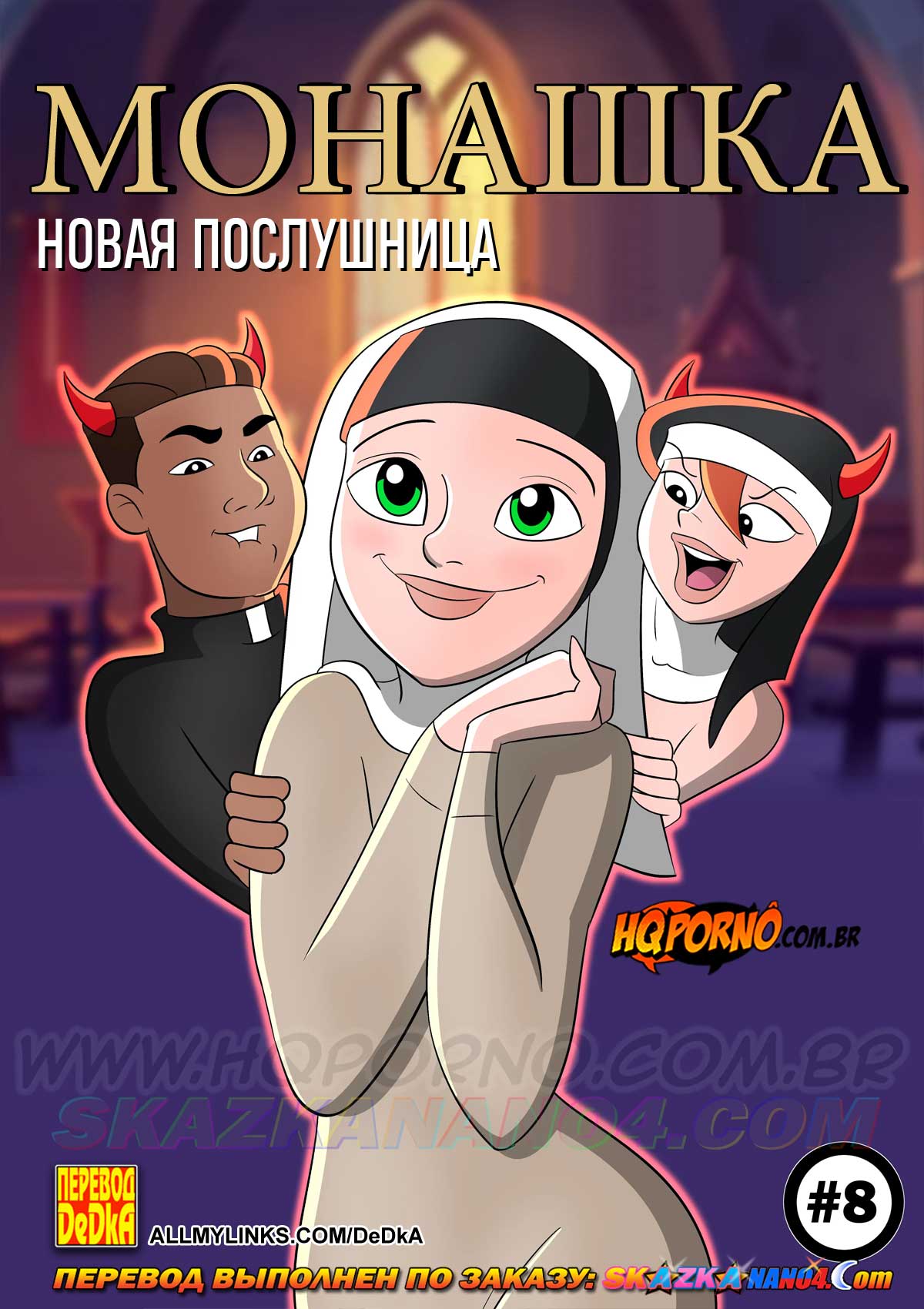 Читать далее 10 Июл 2025 9532 0Порно комикс «Монашка. Часть 8. Новая послушница.»